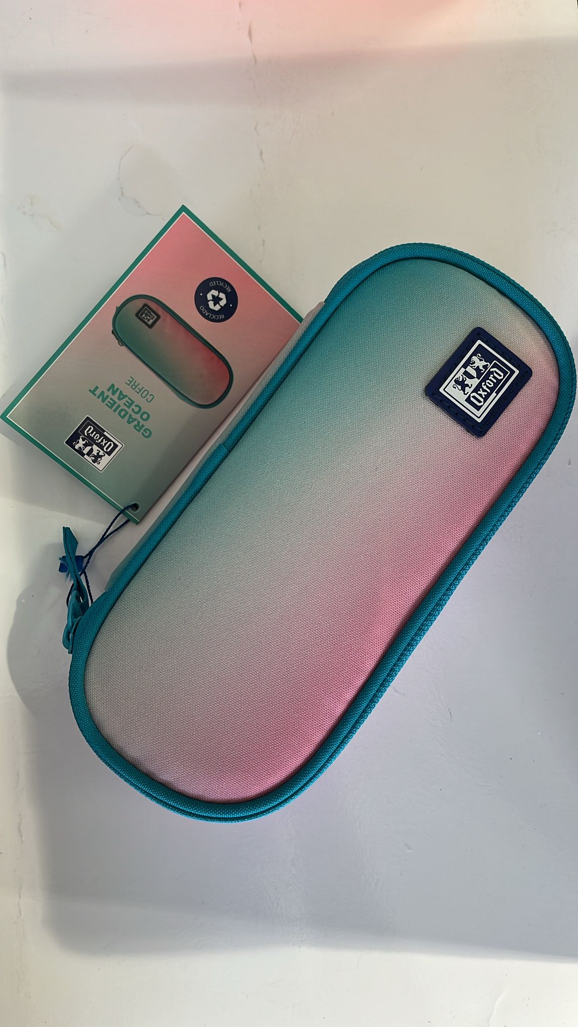 O estojo Oxford Kangoo Gradient apresenta um visual moderno com gradiente de cores suaves. Espaçoso e resistente, é ideal para organizar o material escolar com estilo e praticidade.